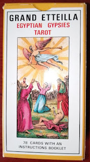 Since the second half of the 20th century, the Grimaud company has been publishing a bilingual French-English version of the deck, which in French is called Grand Etteilla, or Egyptian Tarots (Grand Etteilla ou Tarots Egyptiens), and in English, oddly, Grand Etteilla, Egyptian Gypsies Tarot.